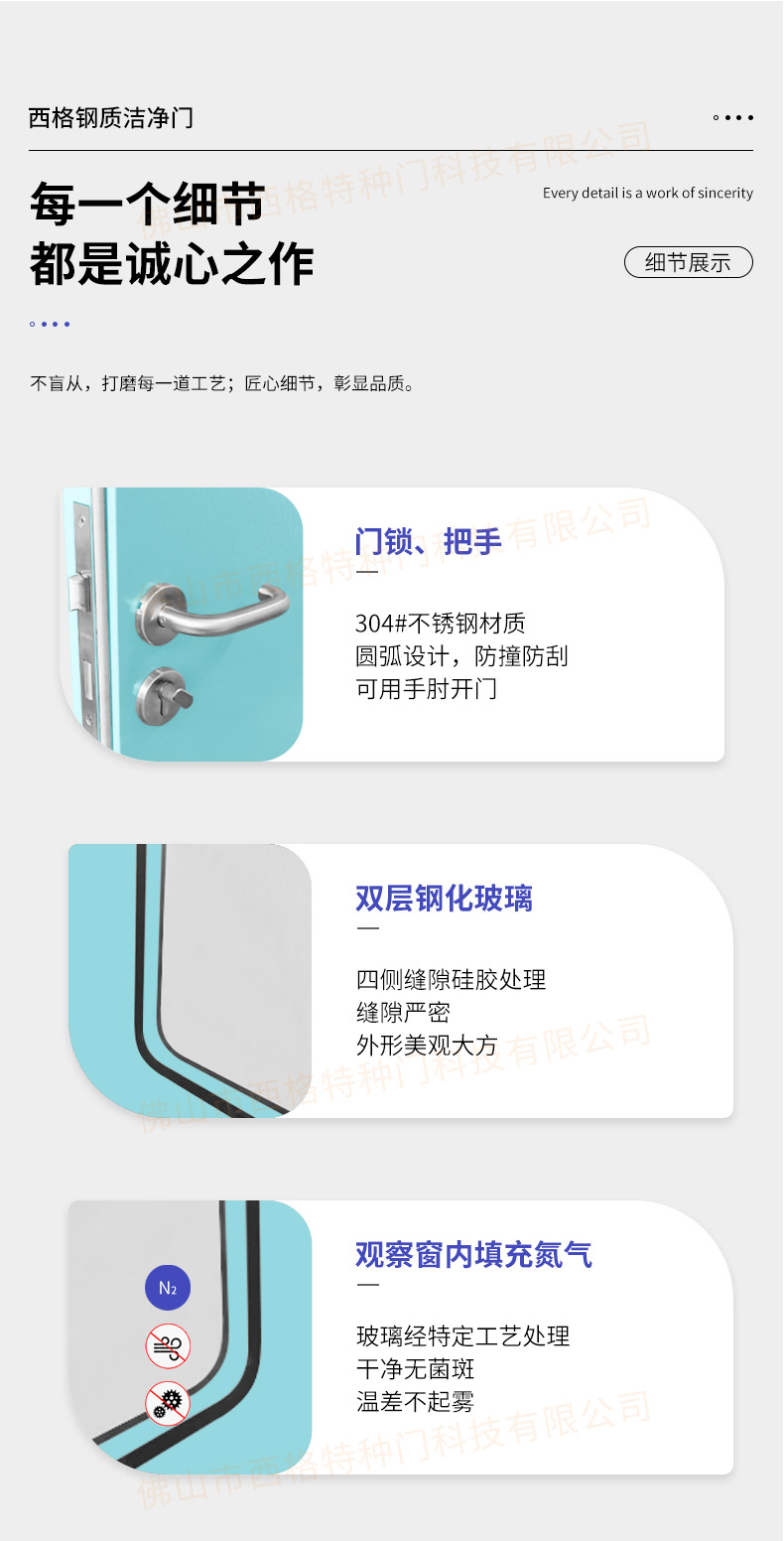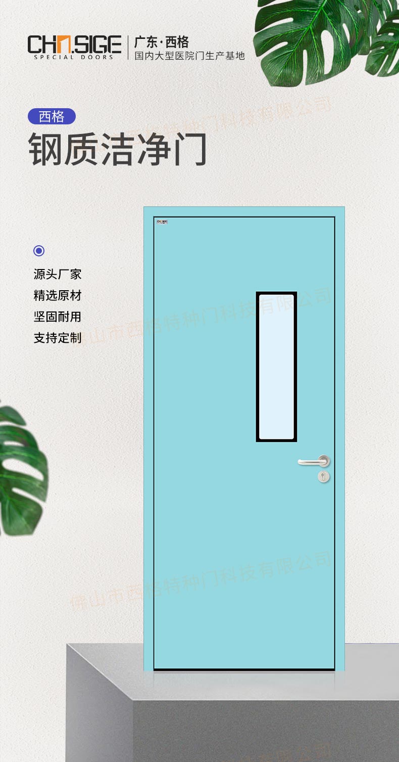 產品簡介:廣東西格,大型凈化門生產廠家,專用生產各類型凈化門,款式,視窗,材質厚度,均可定制。