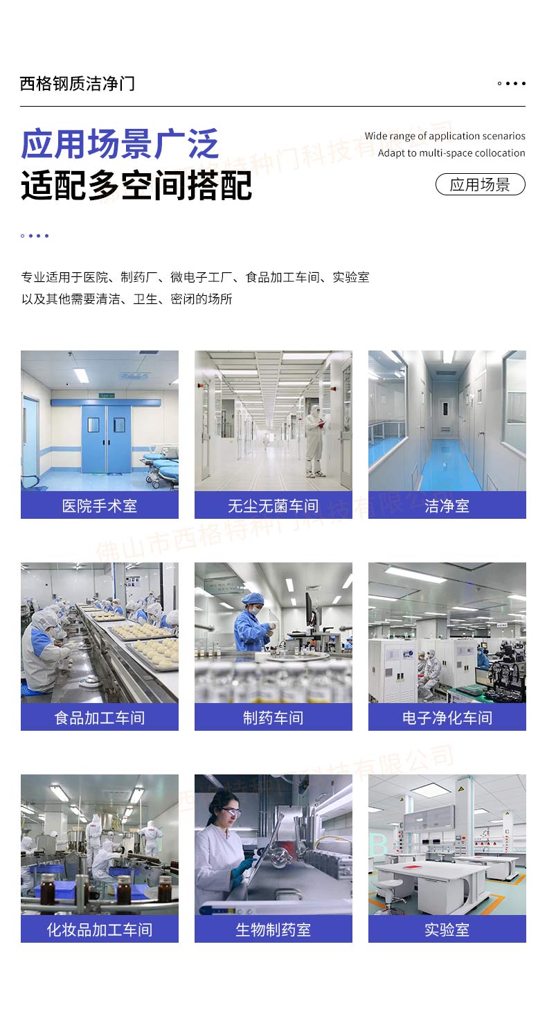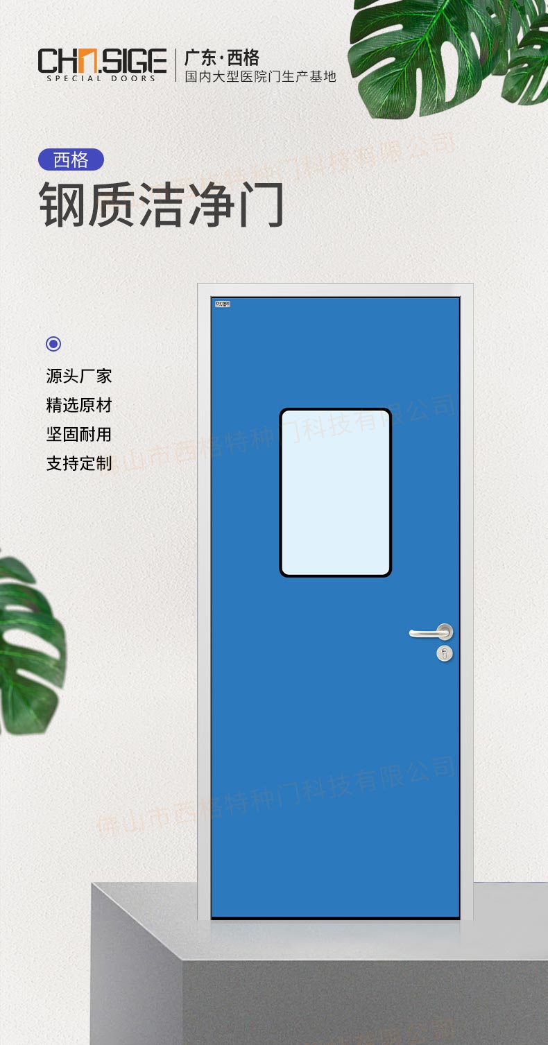產品簡介:廣東西格,大型凈化門生產廠家,專用生產各類型凈化門,款式,視窗,材質厚度,均可定制。