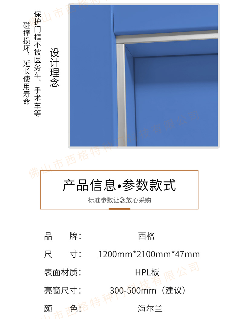 產品簡介:chnsige西格特種門,專業生產病房門,醫院病房門,醫院病房木門,病房木門,木質病房門,鋼質病房門,多鐘款式、顏色,尺寸可定制。